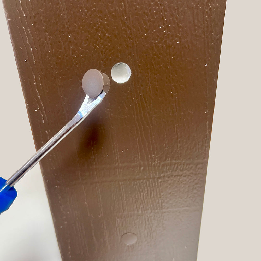 Hand tool to remove 5/8" hole plugs from aluminum patio covers.