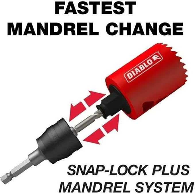 Diablo’s new, high-performance Bi-Metal Hole Saws deliver faster cutting performance and increased productivity. Unlike anything on the market, Diablo’s hole saw system and mandrel design simplify the attachment process for fast and efficient hole saw mounting. These radical new hole saws provide ultimate cutting length to bore deeper holes in a single pass, tool-free plug ejection and Variable Tooth Design for faster cuts.